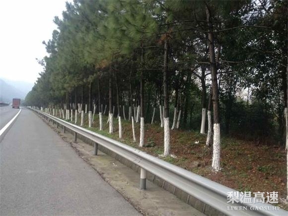 根据冬季树木生长特点和区域地质、气候和环境情况,制定科学的路树刷白计划与方案,在实际操作过程中,要求施工人员严格遵守技术规程,按要求配剂比例,严格标准,一律挂线刷白,刷白高度从树脚至路路面边缘水平线以上1.2m,做到止口平整,高度一致,不留死角,浓度、白度均匀。通过对路树刷白,不仅能杀死树缝里的越冬虫卵和病菌、预防树干冻裂和日灼的发生,增强了行道树的抗病性确保其安全过冬,又使高速公路变得更加整洁美观。(邓玉春)