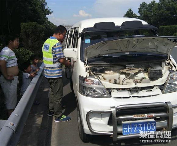 7月13日下午3:30左右,梨温高速公路鹰潭段K621+200右幅,一辆车牌为为云H-Z3***的“面包车”停在了应急车道。鹰潭养护所巡路人员发现后,立即了解情况。