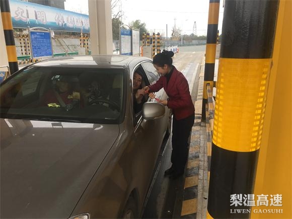 “您好,节日快乐。这个平安‘福’送给您,希望新的一年里平安、福气到您家”, 元月1日,南昌南管理中心梨温高速鹰潭西收费站正在给广大司乘朋友馈赠温馨小礼物,送上最真诚的祝福。