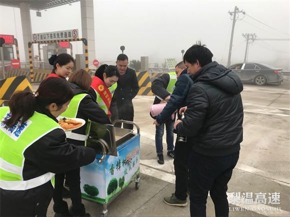 面对滞留的大批司乘和车辆,该站全体干部职工迅速启动便民服务预案,形象大使推出“香樟树”服务车,呈上食堂现做的新鲜面条、油饼、鸡蛋、开水,免费提供给滞留的过往司乘并做好起雾封道的解释工作。司机说道:“我跑高速十多年,像你们这么优质的服务我还是第一次遇见,为你们点赞。”该站用温馨的服务在寒冷的天气中为司乘带去丝丝暖意,得到了广大司乘的好评。