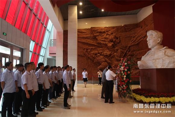 密雨如林,苍松翠青。早间十点,160公里外的方志敏烈士纪念馆,迎来了南昌南管理中心的一批党员,他们以“牢记使命、担当作为”为出发点,来此寻找红色之心、初心之路。汉白玉的方志敏烈士雕像庄严肃穆,党委委员周洪达、万良红同志趋前整理挽联,带着党员们敬献花圈,向民族英雄、革命烈士方志敏雕像默哀并三鞠躬。