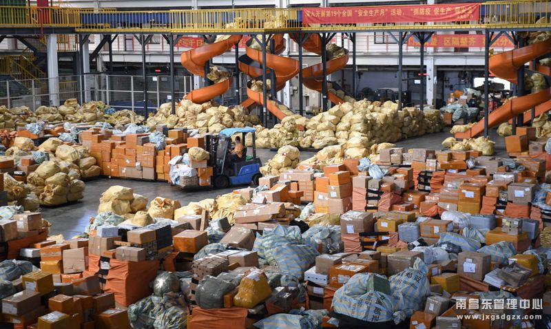 11月10日,在中国邮政集团广州航空邮件处理中心,工作人员在总包待发区内作业。新华社记者 邓华 摄