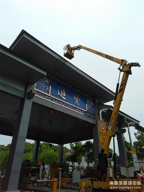 近日,南昌南管理中心进贤站借用机电维护单位的登高车对收费大棚的漏水情况进行排查,未雨绸缪全力做好应对雷雨天气各项准备工作。