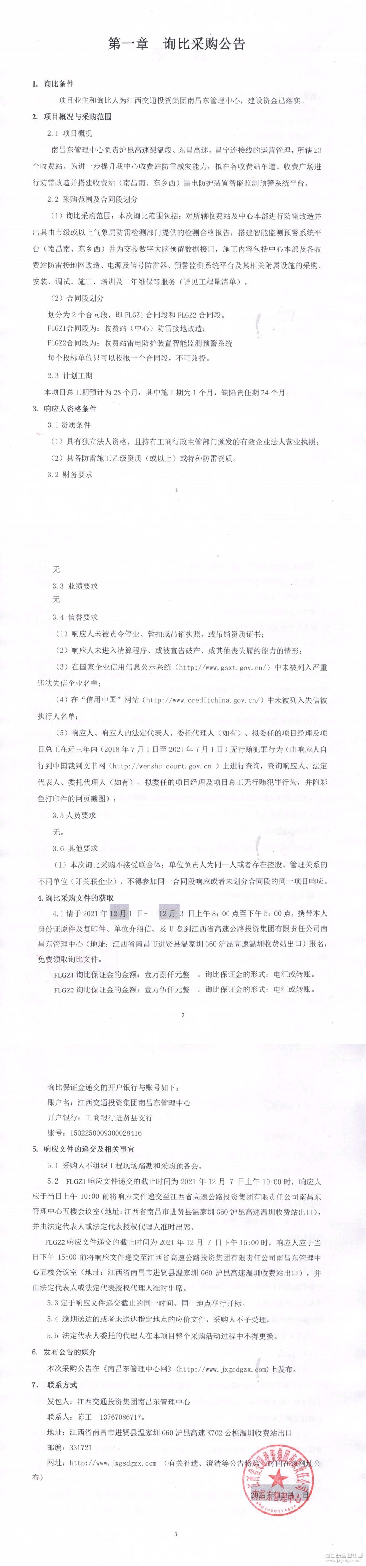 南昌南管理中心收费站(中心)防雷接地改造及收费站雷电防护装置智能监测预警系统(询比采购公告)