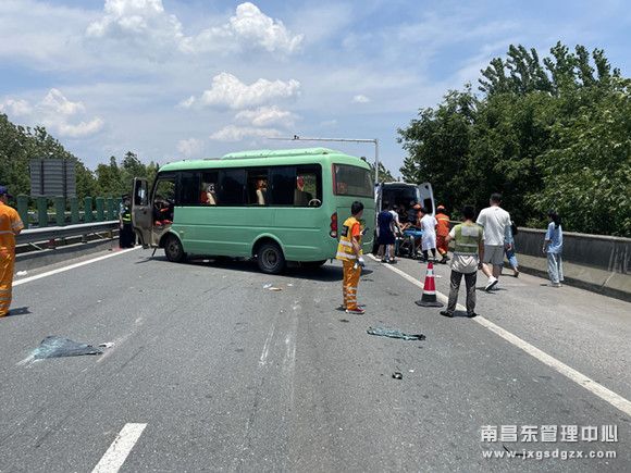 7月4日11时40分左右,一辆从鄱阳县开往浙江省宁波市的中型客车在沪昆高速梨温路段K486公桩处发生追尾事故,车上共有20多名乘客,其中有部分人员受轻伤,造成上海方向全部封闭。江西省交投集团南昌南管理中心清障救援队玉山中队紧急出动,确保车辆及全体成员安全驶离高速,未造成二次事故。
