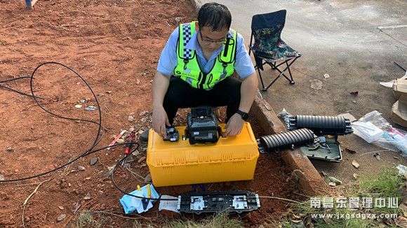 维护站技术员到达该站后,首先对机房ETC门架服务器进行查看,但并未发现异常,随后经验丰富的技术员第一时间判断可能是光缆损坏造成的通讯故障。他们立即对光缆进行勘察,经勘察发现院区内一处挖机正在施工,造成光缆被挖断。在确定故障点后,立即各司其职开始准备光缆抢修工作。此时已经是下午13点多钟,白晃晃的烈日分外晃眼,他们顾不得片刻的休息,因为他们深知及时恢复门架通信的重要性,必须要以最快的速度完成光缆熔接工作,保障门架系统的网络畅通。