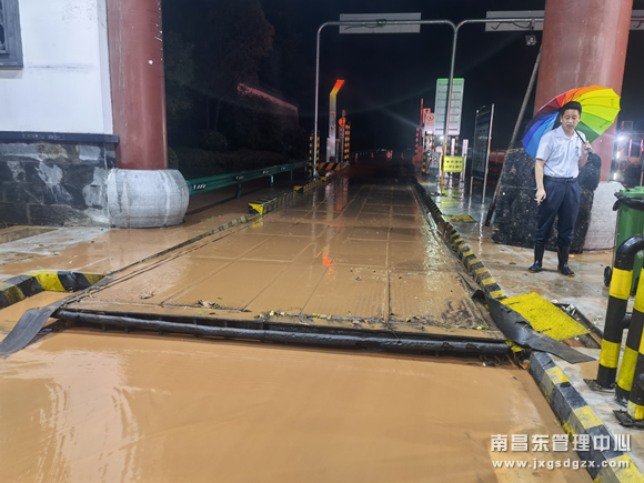 凌晨1点10分,维护站技术员赶到上饶东收费站后立刻投入机电设备故障检修中。经过检查,发现是由于持续降水量过大,该站广场排水口无法完全排空积水,积水通过出口排水沟倒灌将三块地磅全部撑浮起来,地磅称台与基座分离,悬浮在水中,有的地磅已经脱离地磅基础坑,被水冲上了路面,存在重大行车安全隐患,地磅此时已无法再继续使用。