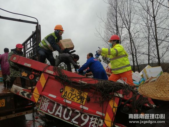 车辆救援大队东乡中队全员出动,徒手搬运30多吨货物,成功帮司机挽回经济损失近180万元。