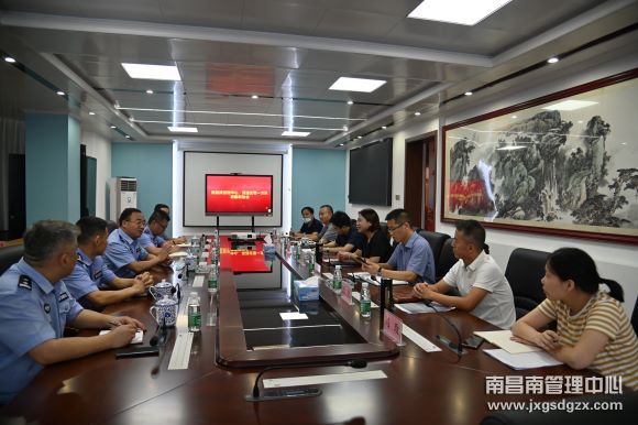 7月20日,南昌南管理中心与高速交警一支队在机关召开道路安全联勤联动会,中心党委书记陈苏华,副总经理吴成钢、祝谭雍出席会议,高速交警一支队及各大队负责人与会,中心机关有关部门负责人参会。