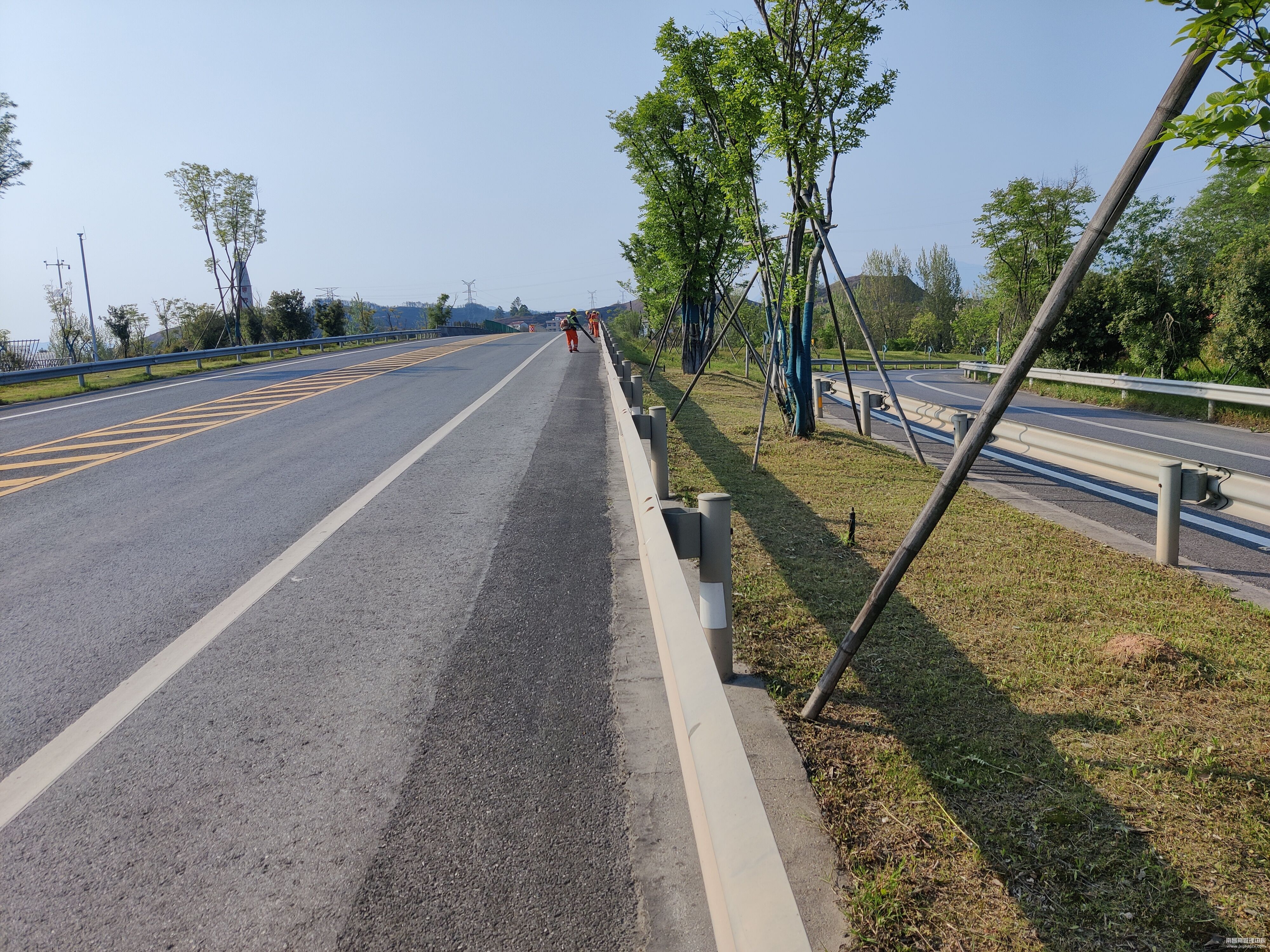 该所杨梅岭养护站青年干部员工抢抓养护时机,坚持以党建为引领、以问题为导向,抓业务真实干,采取多项科学养护措施,全面提升路容路貌。路容路貌巡查方面,该养护站干部员工全员上路,划分区段,责任到人,加大辖区沿线交安设施及路面保洁绿化的检查力度。针对发现的问题,该站争分夺秒抢进度,一丝不苟抓质量,通过对损坏、松动的防眩网及时进行修复,损坏弹力柱及时更换,有效保障了司乘人员的安全出行。