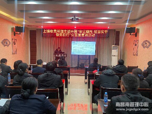 12月20日,南昌南管理中心上饶收费所团支部组织开展“牢记嘱托 担当实干 奋勇前行”宣讲活动。