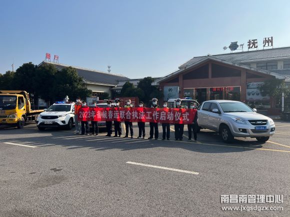 近日,南昌南管理中心罗湖收费站联合江西省交通运输执法局六支队一大队、江西省高速公安局六分局一大队、罗湖养护站等相关单位,在抚州服务区举行了2023年春运保畅工作启动仪式。此次仪式主要是通过“一路多方”联勤联动机制,深入交流保畅机制发挥更大的作用,同时也正式拉开了2023春运的帷幕。