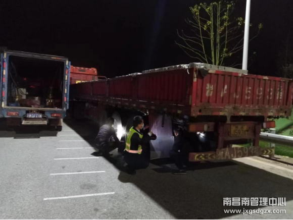 3月21日晚上,一辆大型货车停滞在南昌南管理中心丽村站收费广场上,该站当班工作人员发现这一情况后连忙上前了解。