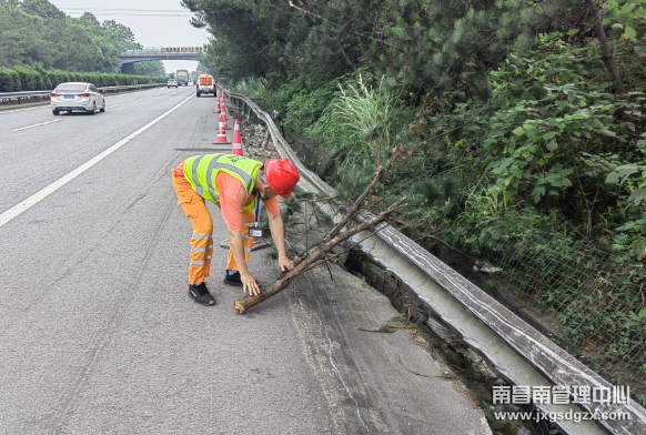 据悉,当天上午10点左右,刘长乐正在路上巡逻,途中经过南昌方向K586+80公桩时,发现应急车道护栏板严重变形,路旁树枝散落一地。他立即联系中队人员和养护站技术员,了解得知最近一个月内该公桩号未有路赔立案。随后,经其现场查勘,该起路产损失金额将近5万元。
