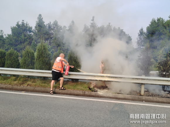 在做好自身防护的同时,该站值班人员熟练地取出干粉灭火器对准起火点喷射,与消防员的共同努力下,不到20分钟就把大火扑灭了,成功挽救了高速公路财产损失。(聂宇豪)