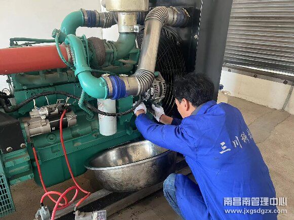 保养过程中,维护人员对发电机组进行了检测、维护和保养。对发电机组的进水管、燃油输油管及防冻液进行了更换,同时对发电机的相关构件进行擦洗和上油。维护人员说:“发电机组长期处于静态,机组本身各种材料容易会与机油、冷却水、柴油、空气等发生复杂的化学、物理变化,从而造成机组材料的破损,所以都必须定期更换。”最后维护人员对发电机进行了试启动,确认其能够正常运行。