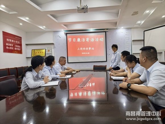 为进一步强化全体员工的廉洁自律意识,筑牢廉洁防线,5月28日,南昌南管理中心上饶西收费站专门组织全体员工开展了节日廉洁寄语活动。此次活动以会议形式进行,紧密结合收费站的实际工作,让每位员工在廉洁会议上发言,分享对廉洁工作的看法和具体做法,使大家深切感受到廉洁工作就在身边,需从小事做起。